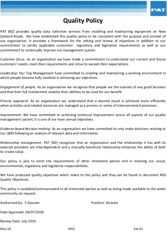 2004: PAT has supplied and installed equipment for slow motion scale systems for truck weight checks, located at both the Port of Auckland container terminal exit and Mainfreight terminal (Otahuhu). A further seven permanent slow WIM scales have been supplied to NZTA for use by the CVIU. The CVIU is also using portable truck scales, originally designed and manufactured by PAT Germany.